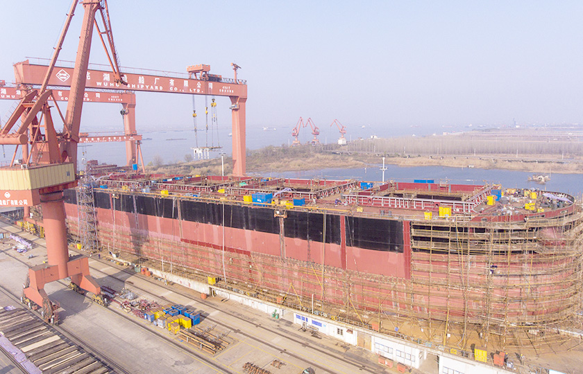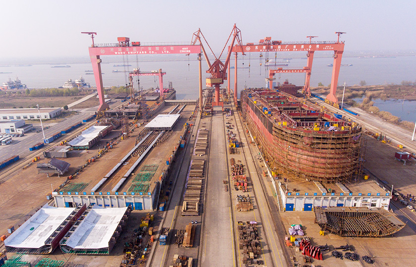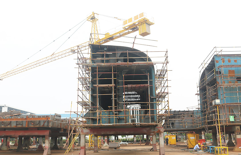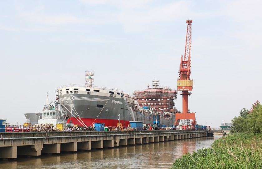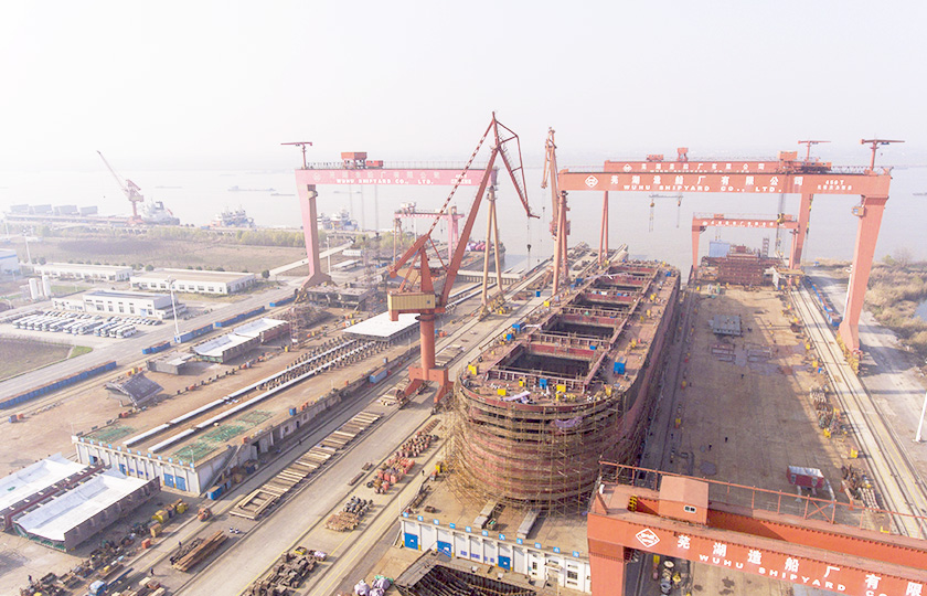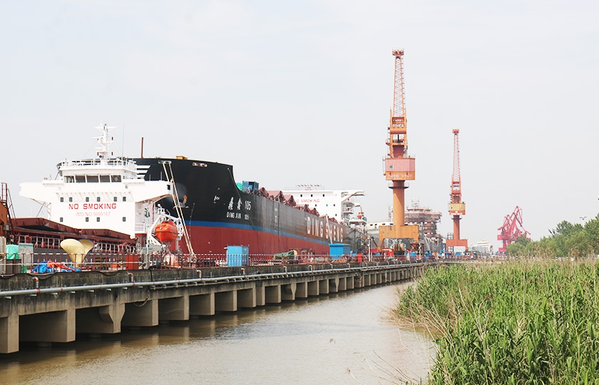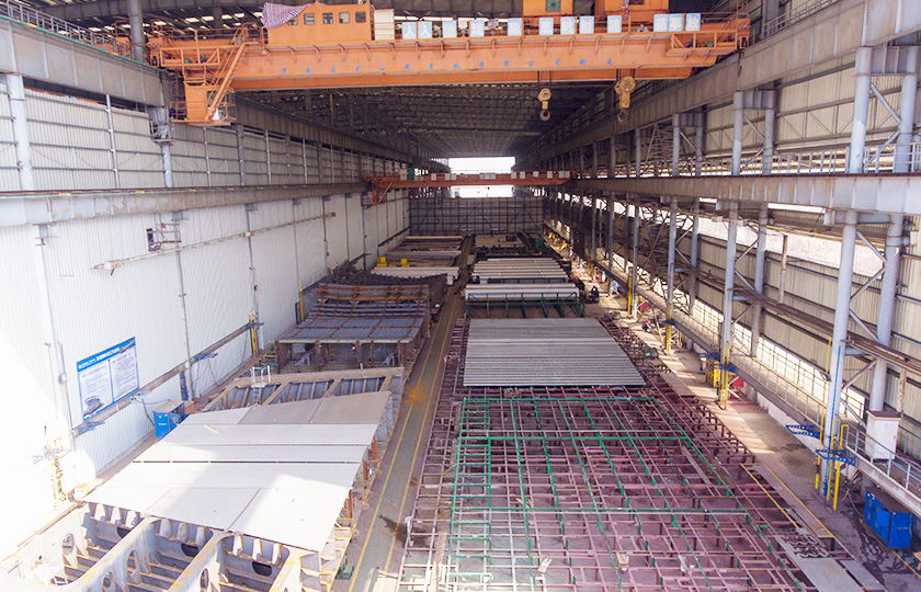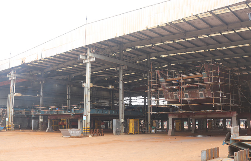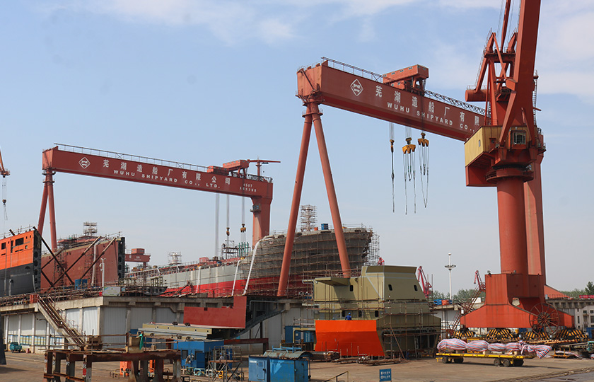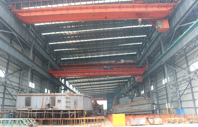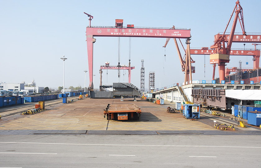 公司總投資達(dá)22億元,年造船載重噸位為80萬噸,一級I類造船企業(yè)。廠區(qū)總占地面積135.83萬平方米,岸線長度1355米,長達(dá)740米舾裝碼頭1座,擁有八萬噸級大型船臺兩座,擁有單臺起重能力達(dá)450t門吊3座,單臺起重能力32t塔吊3座。